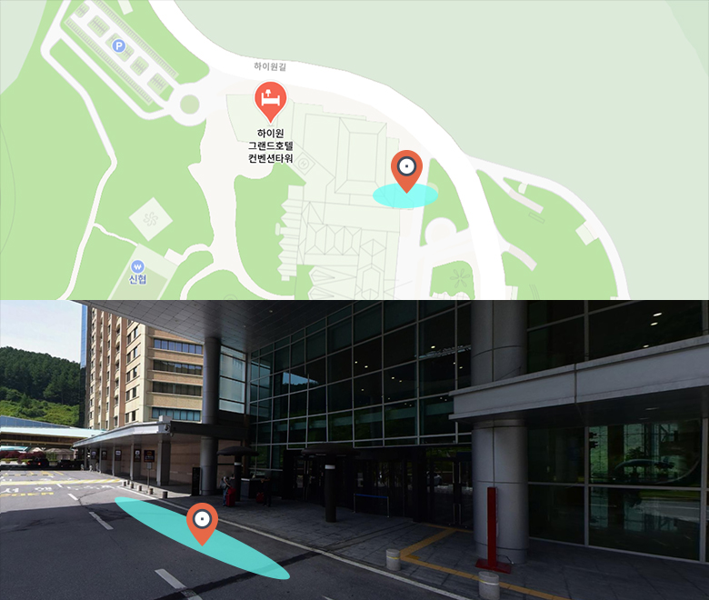 힐콘도 | 마운틴콘도 (체크인 센터) | 언덕주차장 | 행사장 (하이원리조트 그랜드호텔 (컨벤션타워)) |